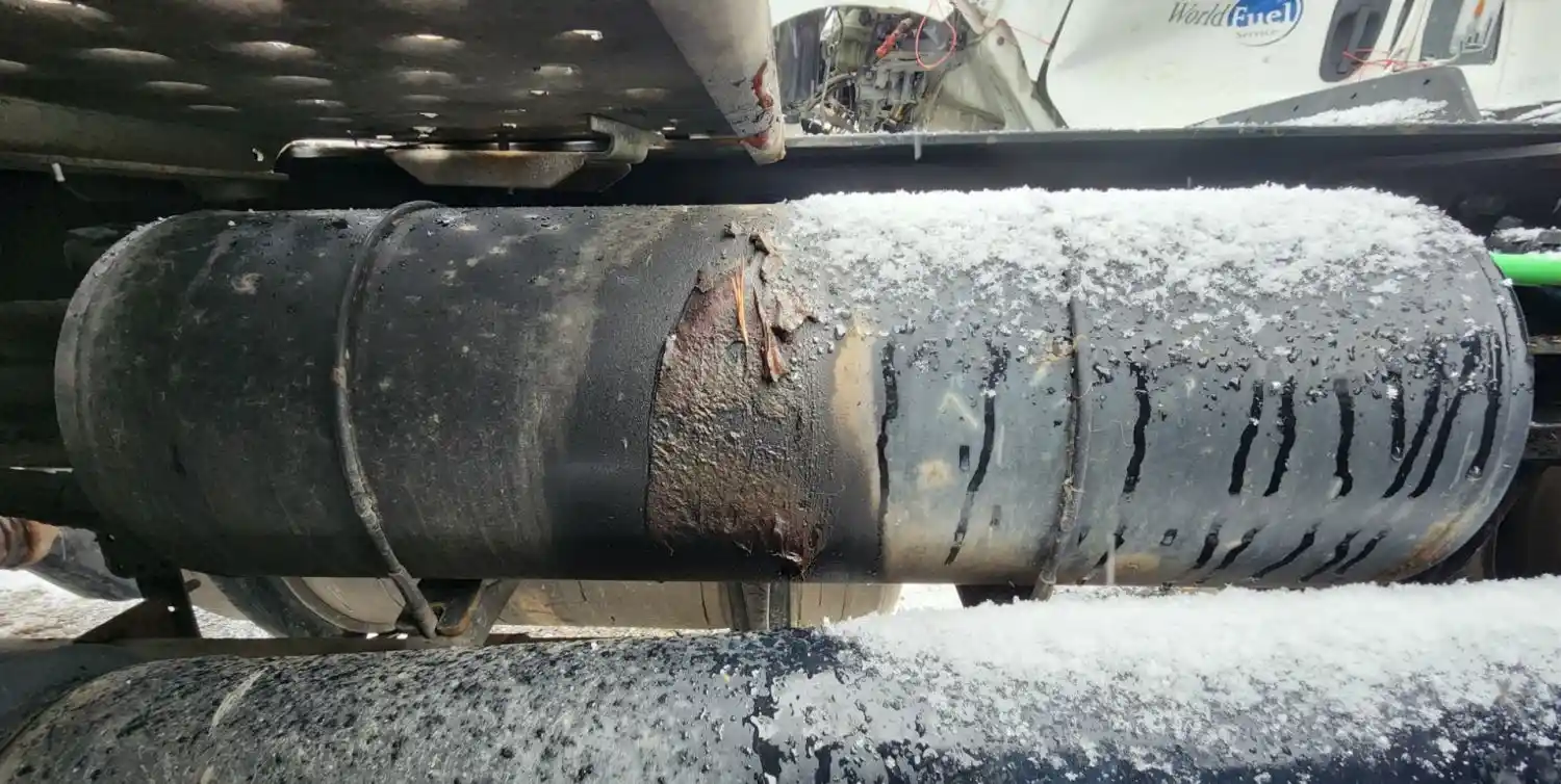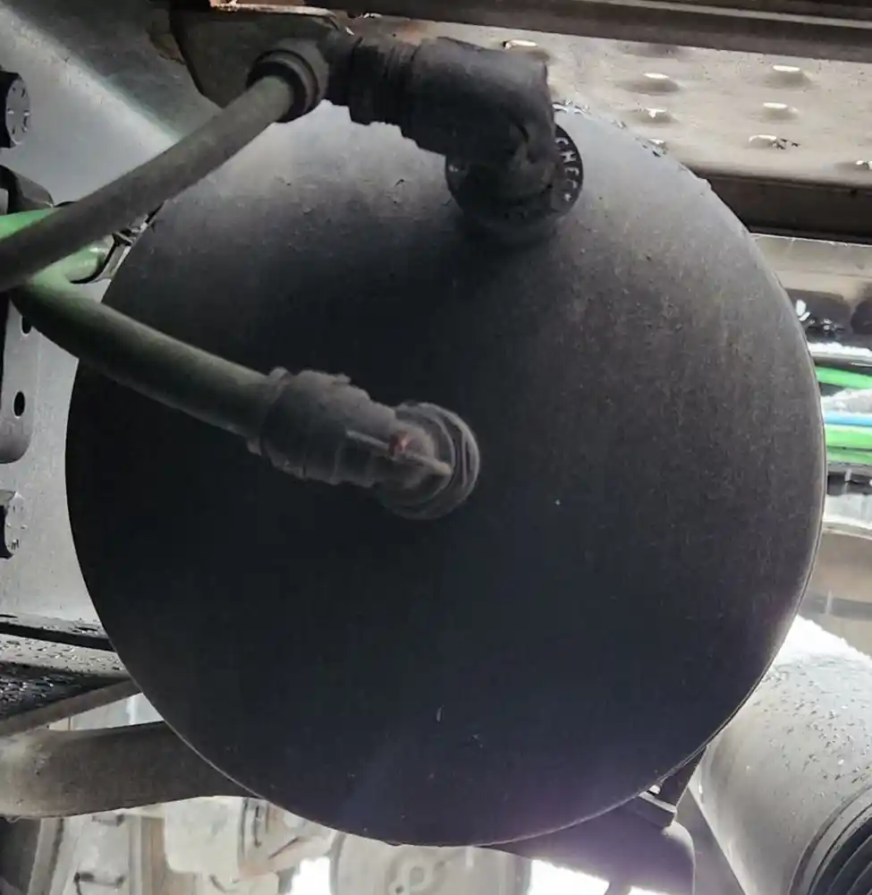 (Used) 2019 Freightliner M2 112 Medium Duty, AIR TANK (2)- Side: Passenger Right Side, Location: Passenger Side Inside Frame, Material: Steel, Dimensions: L=28", D=10", Front Ports: 2, Rear Ports: 3,