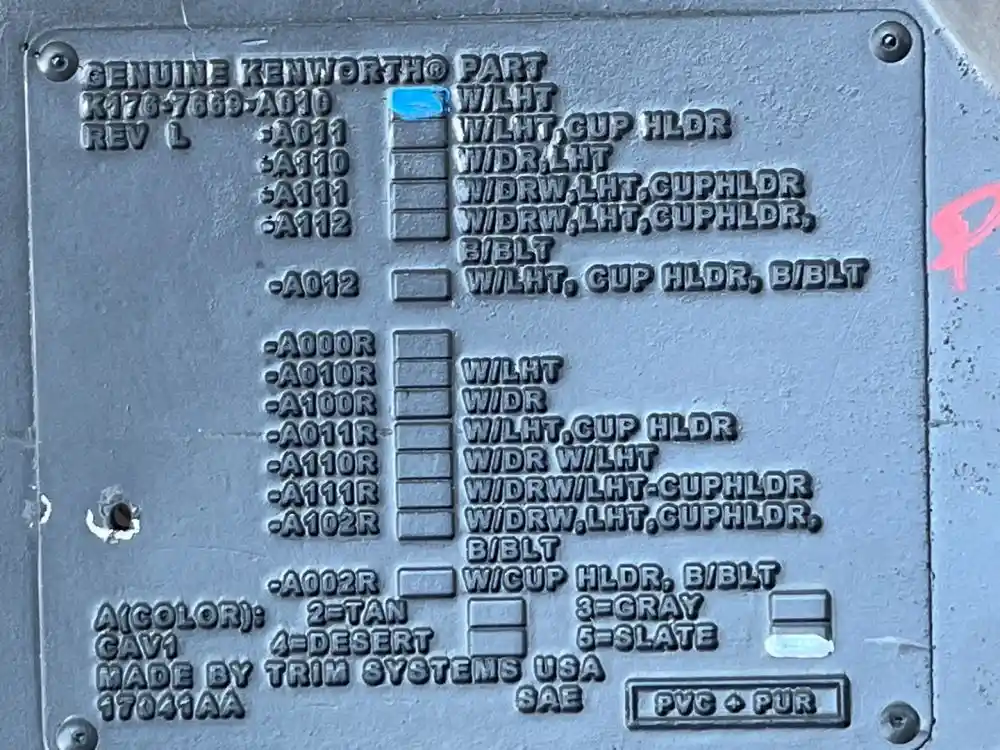 (Used) 2019 Kenworth W900, INTERIOR SLEEPER PANEL- Part Number: K176-7669-A010, Side: Driver Side, Material: Plastic, Color: Gray, ,