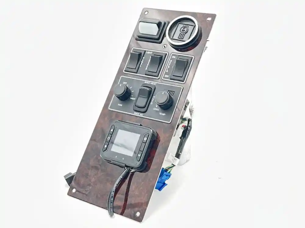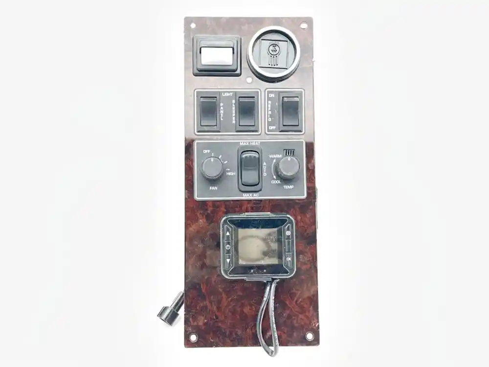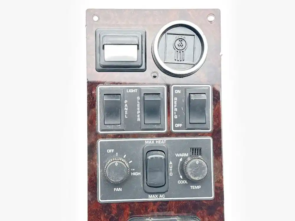 (Used) 2019 Kenworth W900, LIGHTS SWITCH PANNEL- Part Number: U64-1156-61100, Controls: Light Panel Sleeper, REFRIG ON/OFF, Max Heat, FAN, Temp, Includes: Air Diesel Heater Controller, Material: Plastic and Aluminum, Reference images for condition. ,