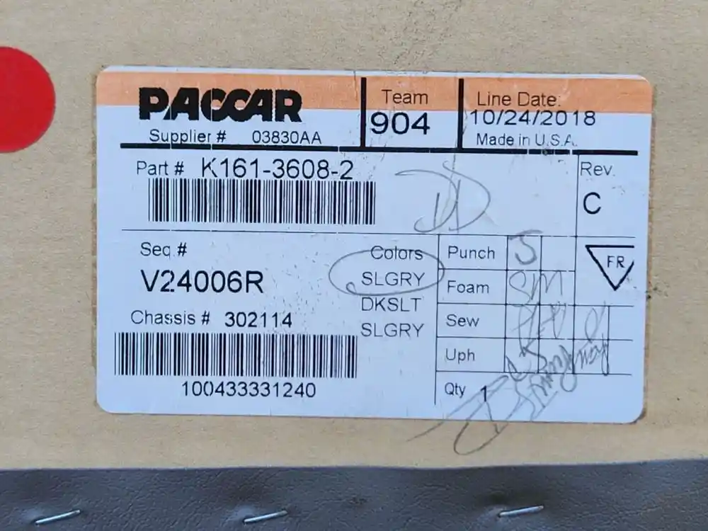 (Used) 2019 Kenworth W900, TRIM PANEL- Part Number: K161-3608-2, Color: Grey, Material: Vinyl, Location: Around At the back glass, in the Sleeper, Reference images for condition
