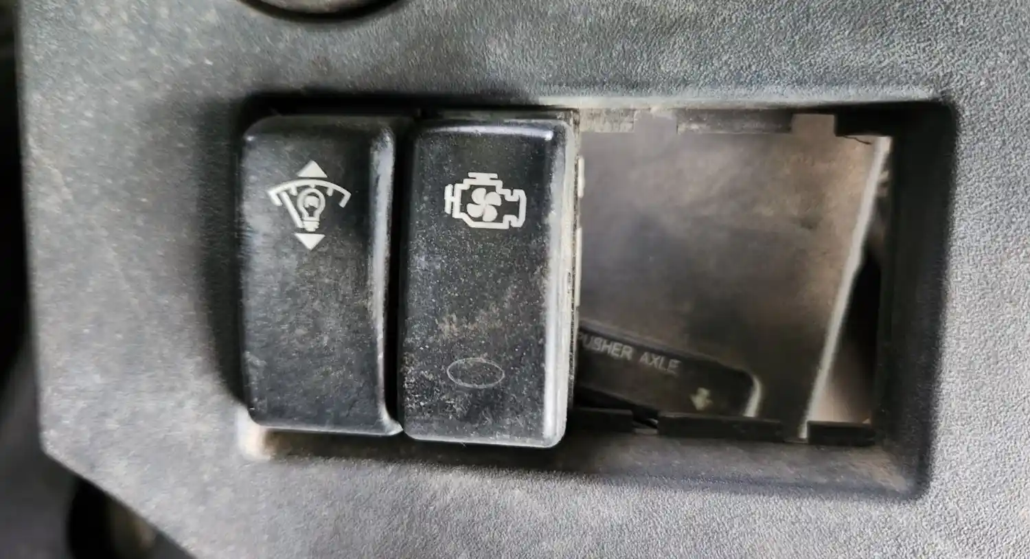 (Used) 2019 Peterbilt 567, MISCELLANEOUS DASH SWITCHES- Controls: Cruise Control ON-OFF, Cruise Control Set-Resume, Engine Fan, Lights, Includes Gauges: Front Rear Axle Temperature, Rear Rear Axle Temperature, Pusher Axle, Manifold Pressure, Material: Plastic, Reference images for condition,