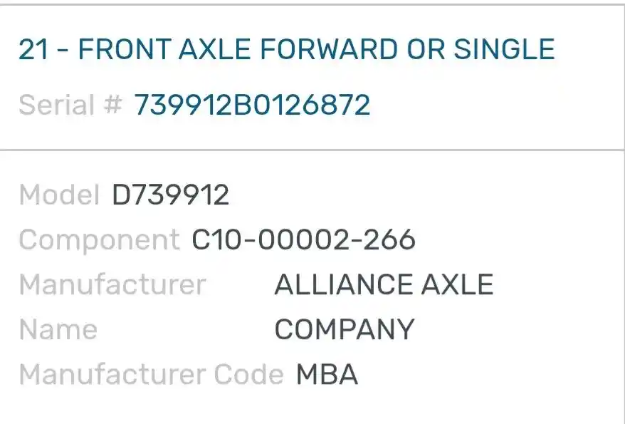 (Used) 2020 Freightliner M2 106, FRONT SPINDLE/KNUCKLE- Part Number: C10-00002-266, Serial Number: 739912B0126872, Side: Passenger Right Side, Make: Detroit, Model: F10.0-3, Capacity: 10,000 Lbs, Hub Bolts: 10, Brake Type: Drum,
