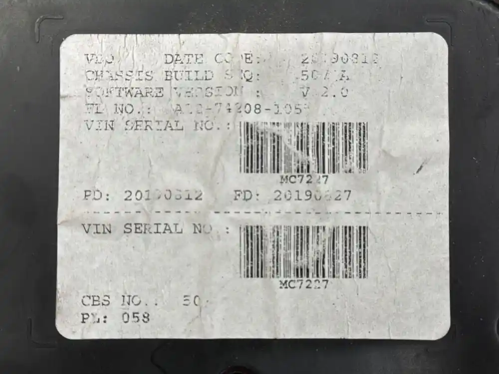 (Used) 2020 Freightliner M2 106, INSTRUMENT CLUSTER- Part Number: A22-74208-105 Serial Number: MC7227 Gauges: Oil Pressure, Water Temp, Rpm, Speedo, Fuel Level, DEF Level, Primary Air Pressure, Secondary Air Pressure, Material: Plastic, Reference images for condition ,