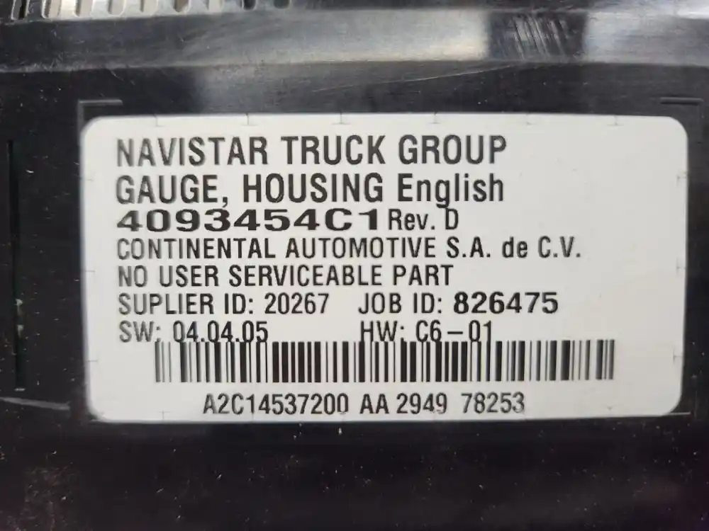 (Used) 2020 International LT625, INSTRUMENT CLUSTER- Part Number: 4093454C1, Gauges: Coolant Temperature, Brake Air Pressure (1), Brake Air Pressure (2), Fuel Level, RPM, Engine Oil Pressure, MPH, Def Level, Material: Plastic, Reference images for condition
