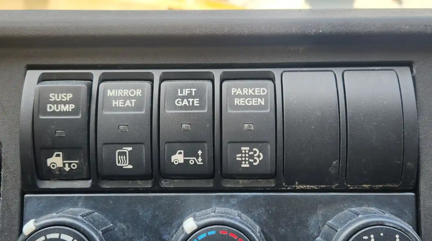 (Used) 2020 International MV607, MISCELLANEOUS DASH SWITCHES- Controls: Susp Dump, Heat Mirror, Lift Gate, Particulate Filter Regeneration, Material: Plastic, Reference images for condition,