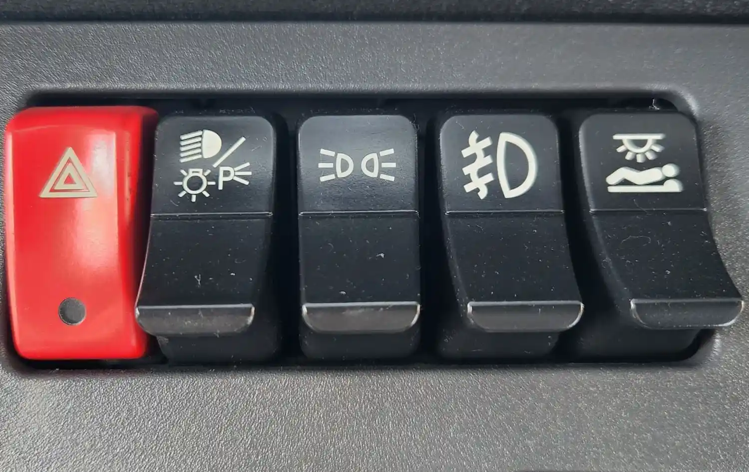 (Used) 2020 Kenworth T680, MISCELLANEOUS DASH SWITCHES- Controls: Hazard Lights, Head Lights, Auxiliary Light, Clearance Lights, Sleeper Light, Material: Plastic,