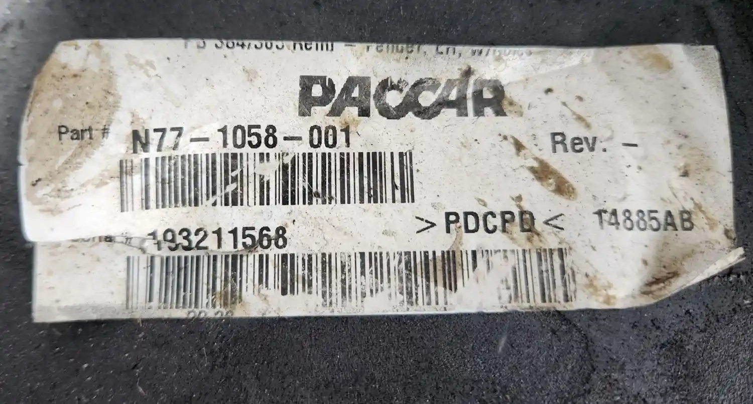(Used) 2020 Peterbilt 567, FENDER EXTENSION- Part Number: N77-1058-001, Side: Driver Left Side, Color: White, Material: Composite, Reference images for condition,