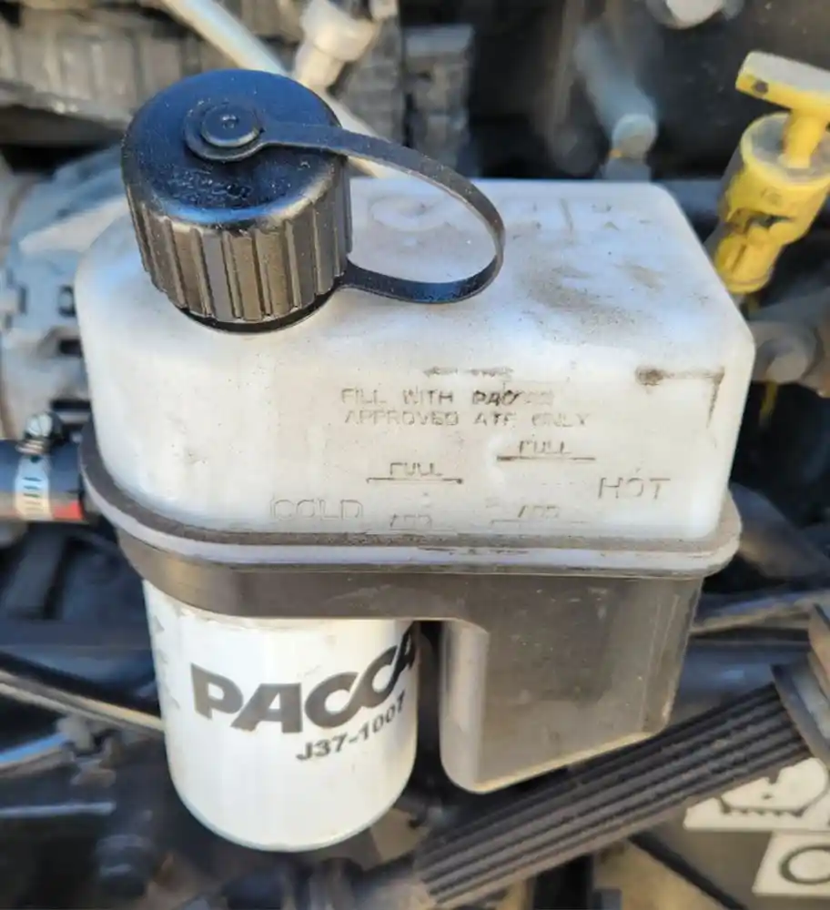 (Used) 2020 Peterbilt 567, POWER STEERING RESERVOIR- Part Number: J37-1007, Location: Frame, Side: Driver Left Side, Engine: PACCAR MX11, Make: PACCAR, Model: J37-1007, Material: Plastic, Reference images for condition,