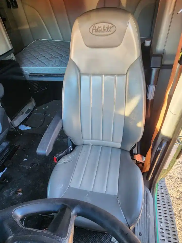 (Used) 2020 Peterbilt 579, SEAT- Side: Driver Left Side, Color: Grey, Material: Vinyl, Type: Air Ride, The Vinyl is torn!! Reference images for condition,