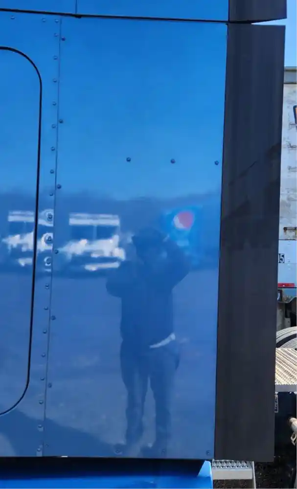 (Used) 2022 Peterbilt 579, CAB FAIRINGS- Side: Driver Left Side, Color: Blue, Material: Aluminum, Dimensions: H=60 ¼", L=31", Reference images for condition,