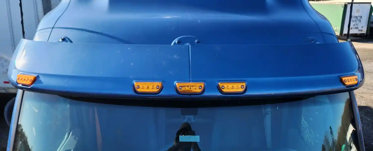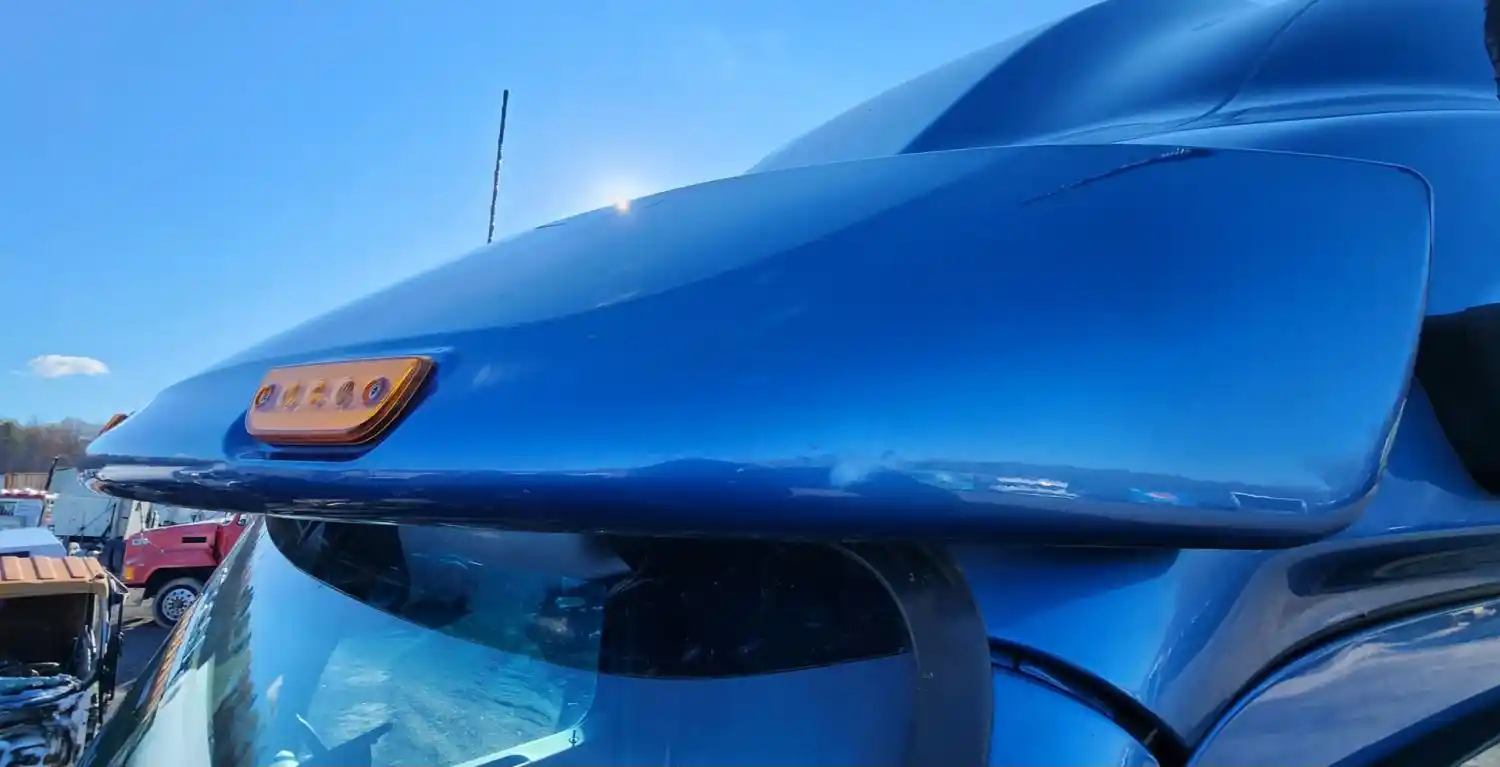 (Used) 2022 Peterbilt 579, EXTERIOR SUN VISOR- Side: Center Of Truck, Color: Blue, Material: Fiberglass, Reference images for condition,