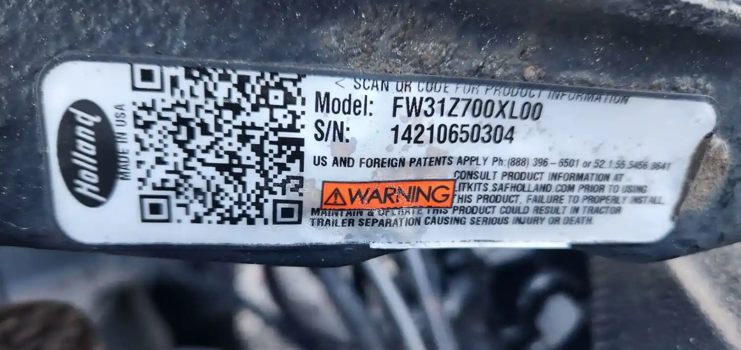 (Used) 2022 Peterbilt 579, FIFTH WHEEL- Serial Number: 14210650304, Make: Holland, Model: FW31Z700XL00, Type: Stationary, Length: 58 ?", Height: 9", Frame Width: 33 ½", Reference images for condition,