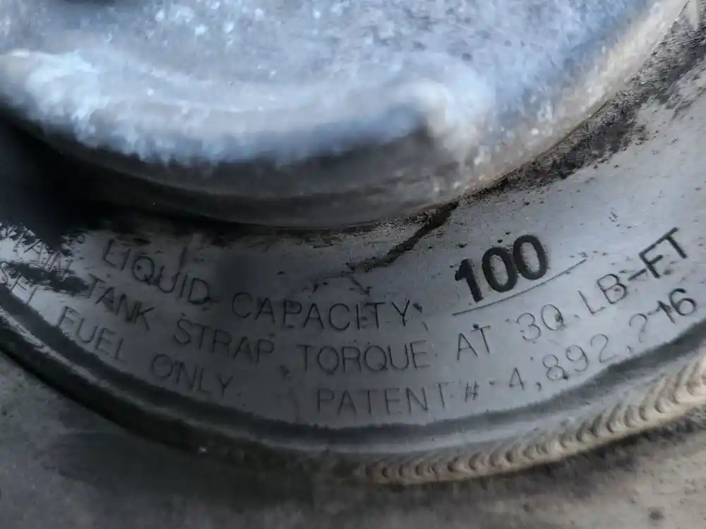 (Used) 2022 Peterbilt 579, FUEL TANK- Side: Driver Left Side, Capacity: 100 Gallons, Material: Aluminum, Shape: Round, Dimensions: L=47", D=25", Reference images for condition,