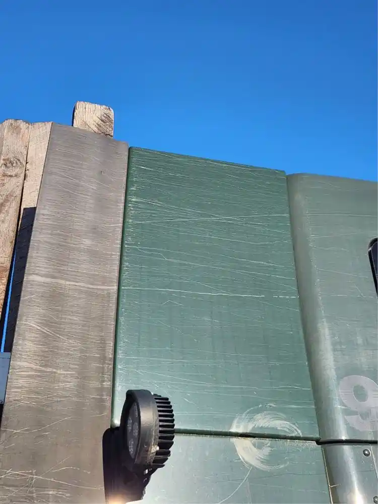 (Used) 2023 Kenworth T680, ROOF FAIRING- Side: Passenger Right Side, Color: Dark Green, Material: Aluminum, Dimensions: L=14.5", H=25.5", Reference images for condition,