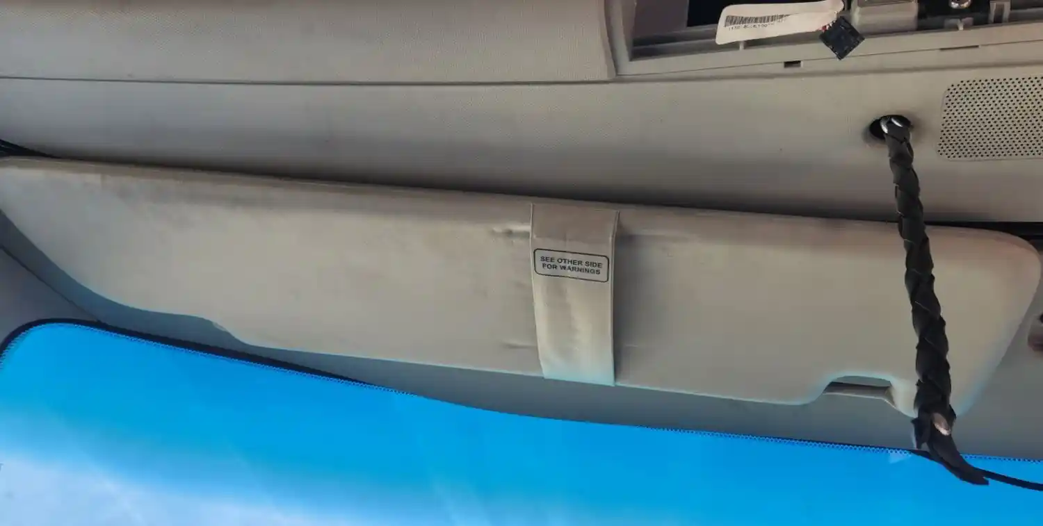 (Used) 2023 Kenworth T680, SUN VISOR- Side: Driver Left Side, Color: Grey, Material: Vinyl, Type: Adjustable, Reference images for condition,