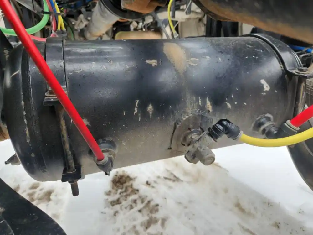 (Used) 2024 Freightliner Cascadia 116 Day Cab, AIR TANK- Location: Rear Center, Material: Steel, Dimensions: L=19.5", D=9.5", Front Ports: 1, Side Ports: 3, Rear Ports: 2, Reference images for condition,
