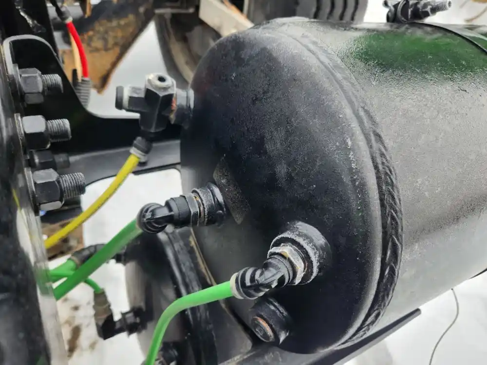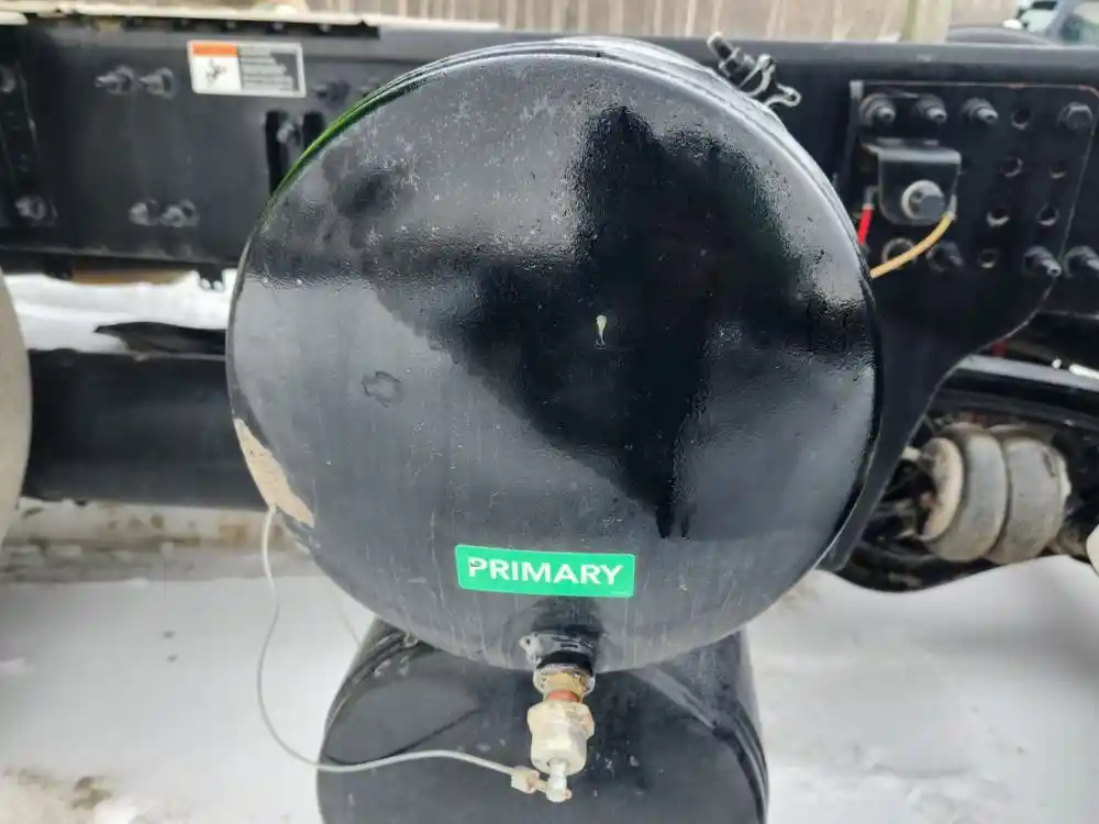 (Used) 2024 Freightliner Cascadia 116 Day Cab, AIR TANK- Side: Driver Left Side, Location: Upper/Top Front tank, Material: Steel, Dimensions: L=18.5", D=11.5", Front Ports: 1, Side Ports: 0, Rear Ports: 4, Reference images for condition,