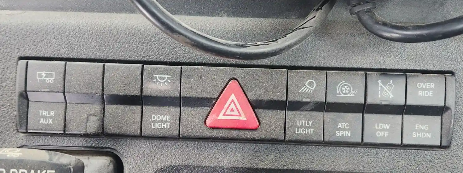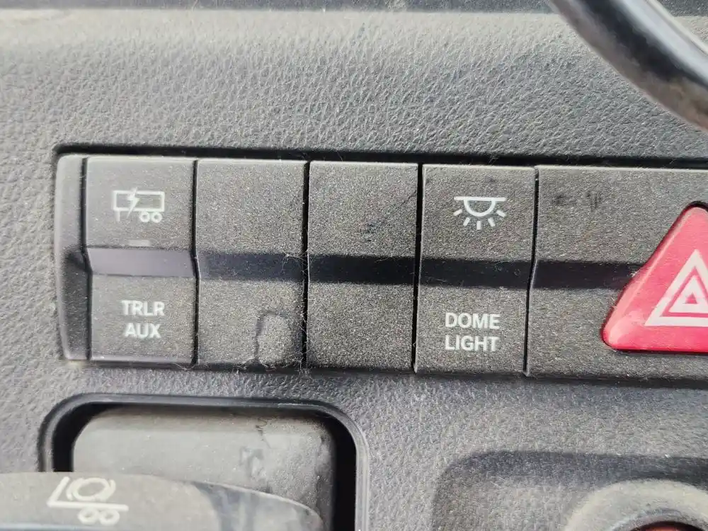 (Used) 2024 Freightliner Cascadia 116 Day Cab, MISCELLANEOUS DASH SWITCHES- Controls: TRLR Aux, Dome Light, Hazard Lights, Utility light, ATC Spin, LDW Off, Over Ride-Eng Shdn, Material: Plastic, Reference images for condition,