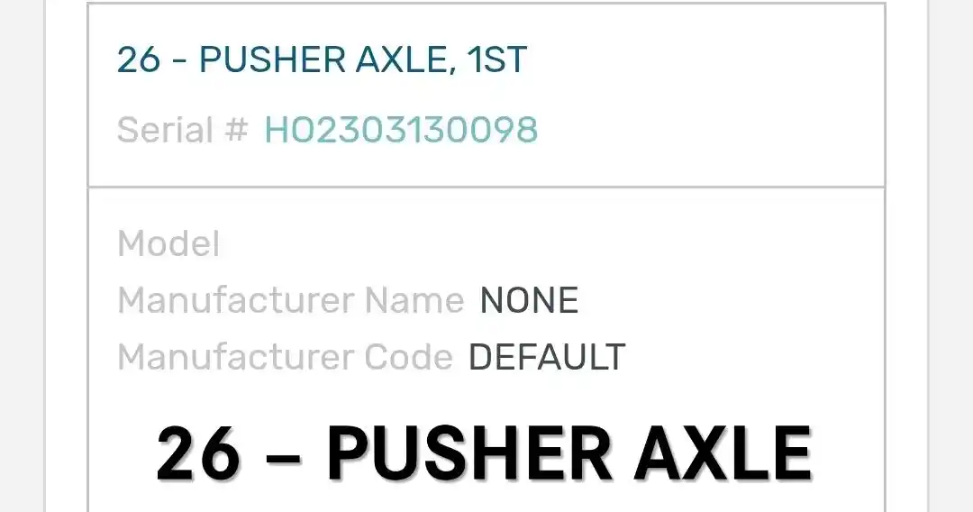 (Used) 2024 Freightliner Cascadia 116 Day Cab, TAG AXLE- Serial Number: HO2303130098, Make: Hendrickson, Model: TBD, Capacity: 11,020 Lbs, Hub Bolts: 10, Brake Type: Drum, Location: Rear, Suspension: Air Suspension, Reference images for condition,