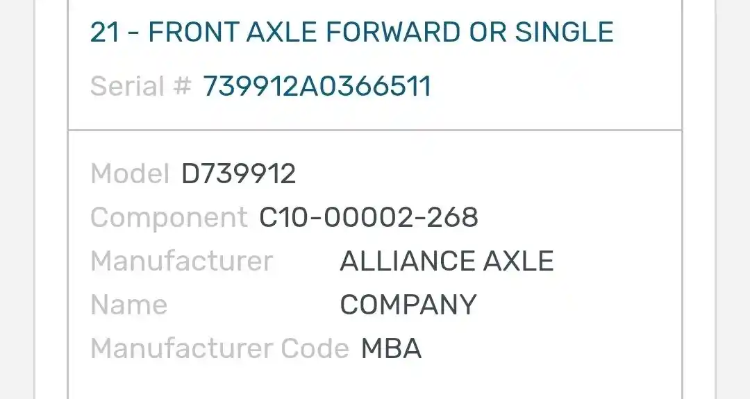 (Used) 2024 Freightliner M2 106, FRONT AXLE BEAM- Part Number: C10-00002-268, Serial Number: 739912A0366511, Center Leaf to Center Leaf: 33", Make: Detroit, Model: DA-F-10.0-3, Capacity: 12,000 Lbs, Reference images for condition, ,