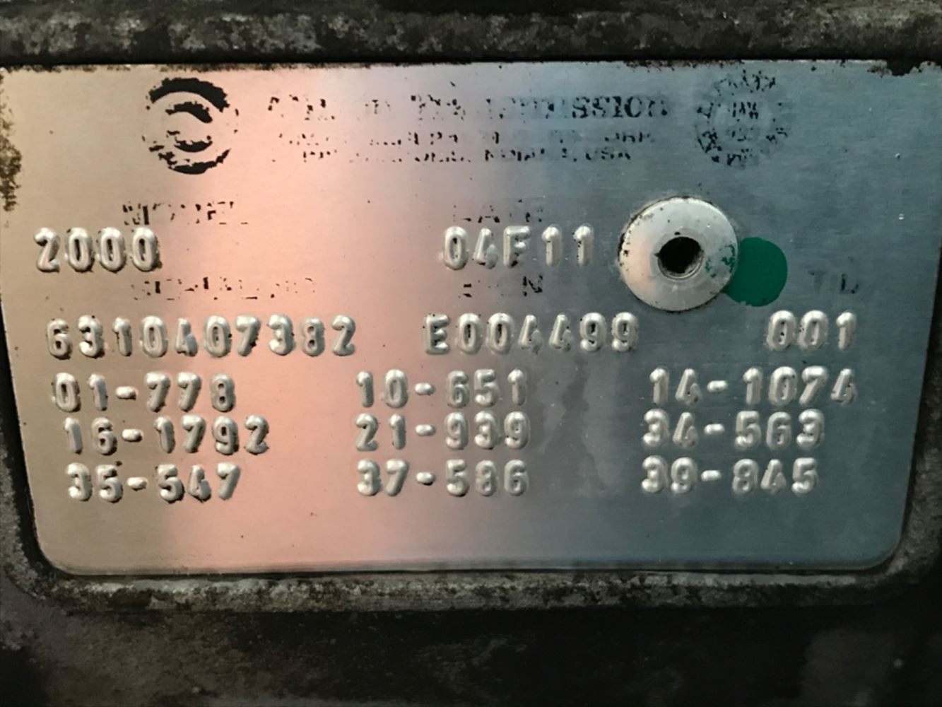 - (USED) AT Allison 2000 Transmission assembly. Serial #6310407382 NO PTO GEAR P/N #E004499 Model #2000 Truck: 2005 AND UP Engine: OTHER To find out more about this Transmission give us a call.