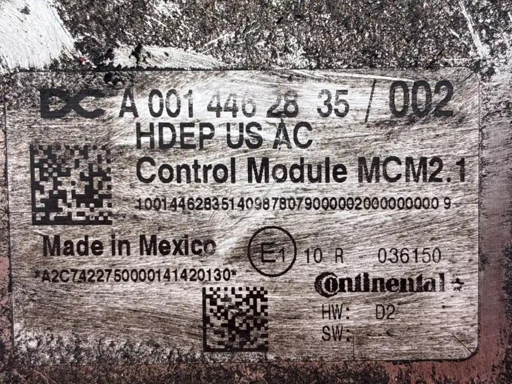 (Used) Detroit DD15, ENGINE ECM- Part Number: A0014462835, Serial Number: HDE0247663 64, A 001 446 28 35 / 002, 10014468351409878079000002000000000 8, A2C7422750000141420130, E1 10 R 036150, HW: D2, SW: ---, 1 Rectangular Plug with 120 Pins, 1 Rectangular Plug with 21 Pins, Reference images for condition. ,