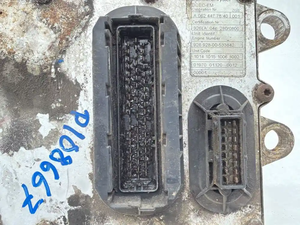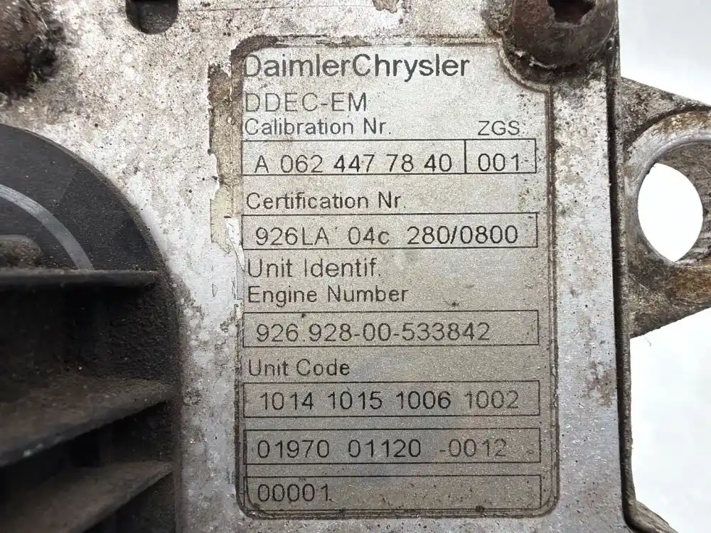 (Used) Mercedes, ENGINE ECM- Mercedes 0014462040 Mercedes 0014463340 Mercedes 0014466440 Mercedes 0014466540 Mercedes 0034461340 Mercedes A0014466440 Mercedes RA0054465440 2004-2008 Mercedes MBE4000 2004-2008 Mercedes MBE904 2004-2008 Mercedes MBE906 2004-2008 Mercedes MBE924 2004-2008 Mercedes MBE926 Part Number: 003 446 13 40, Serial Number: A000004647A8G543A50, DDEC-EM CALIBRATION Nr. A 062 447 78 40 001, CERTIFICATION Nr. 926LA 04C 280/0800, UNIT INDENTIF ENGINE NUMBER 926 928-00-533842, UNIT CODE 1014 1015 1006 1002 01970 01120 0012 00001, 1 Rectangular Plug with 55 Pins, 1 Rectangular Plug with 16 Pins, Reference images for condition. ,