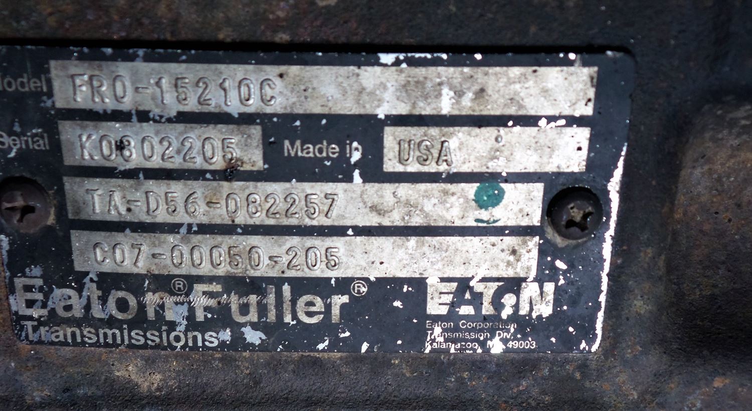 (USED) MT EATON/FULLER FRO-15210C Transmission assembly. Serial # K0802205 Truck: 2011 FREIGHTLINER CASCADIA 125 Engine: DETROIT DD15 To find out more about this Transmission give us a call.