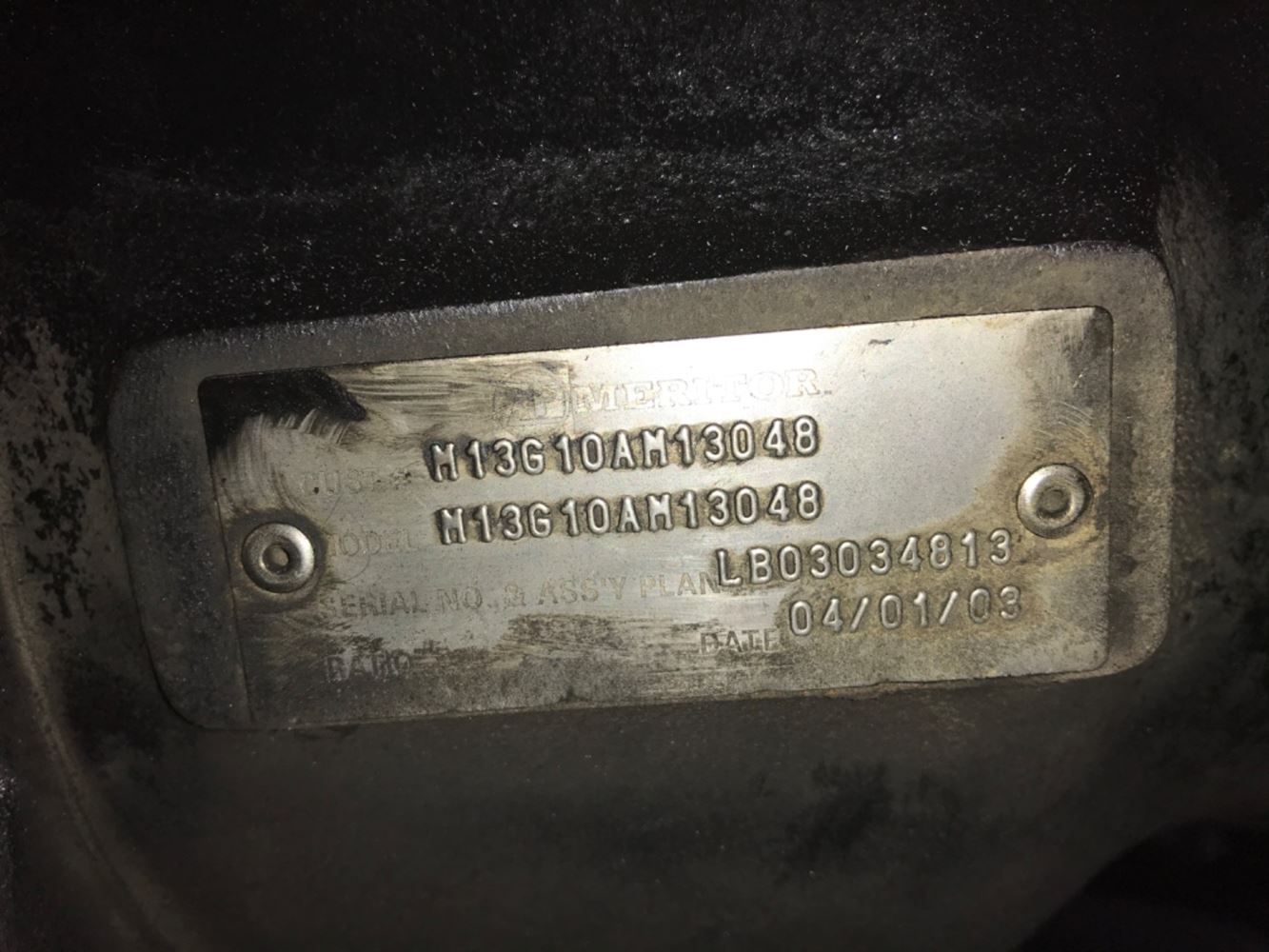 (USED) MT MERITOR M-13G10A-M Transmission assembly. Serial # LB03034813 Truck: 2004 INTERNATIONAL 9200I Engine: CATERPILLAR C12 To find out more about this Transmission give us a call.