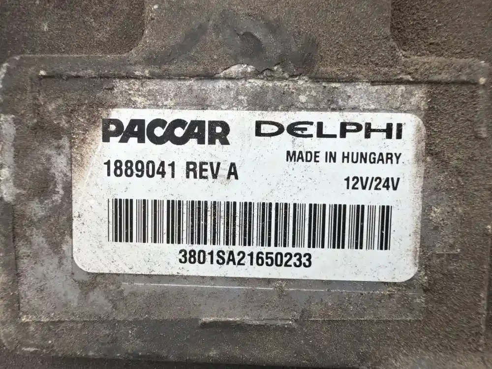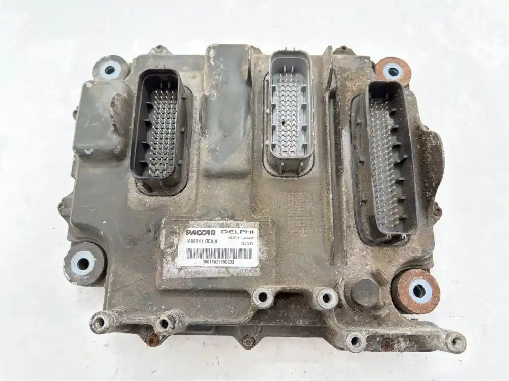 (Used) Paccar MX13 ENGINE ECM- Paccar 1833060, Paccar 1877245, Paccar 1889041, Paccar 2013285, Paccar 2109555, Paccar 2298831, 2010-2014 Paccar MX13, Part Number: 1889041, Serial Number: 3801SA21650233, 12V/24V 3 Rectangular plugs 216 pins, 1: 62 pins, 2: 62 pins (broken plastic rim), 3: 92 pins,
